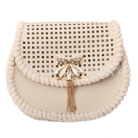 אופנה diy crossbody תיק צבע מוצק חלול-אאוט ארוג